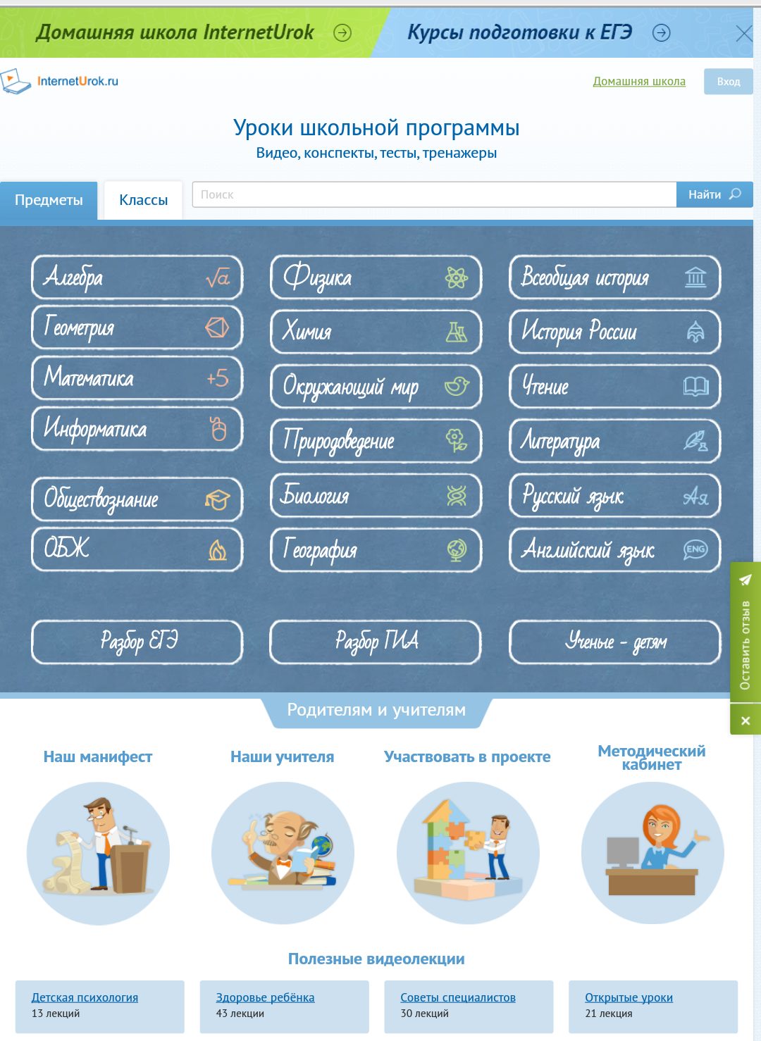 Сайт для дополнительных занятий:http://interneturok.ru/ru
